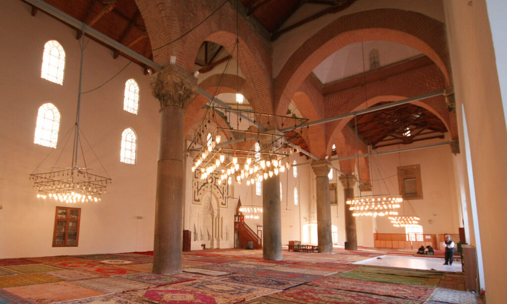 The İsa Bey Mosque, designed following an architectural style first seen in the Umayyad Mosque of Damascus and later in the Great Mosque of Diyarbakır and Artuqid period mosques, is the first mosque with a courtyard in Western Anatolia. Built using spolia materials from the ancient city of Ephesos, particularly columns, the mosque originally had two minarets, a characteristic feature of ruler or bey mosques. Over time, the eastern minaret was destroyed, and the mosque suffered deterioration. A comprehensive restoration was carried out in the 1980s.