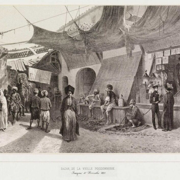 If one were to ask where and how the two fundamental elements of İzmir’s urban identity—its port and trade—intersect, there would be a single answer: hans*. These hans were the final stop in Anatolia for goods transported from the east by camel caravans and the first stop for goods arriving from the west by ships. In a way, serving as the meeting point of the East and West, hans were not only places of trade but also multicultural and multilingual spaces where different cultures came together.